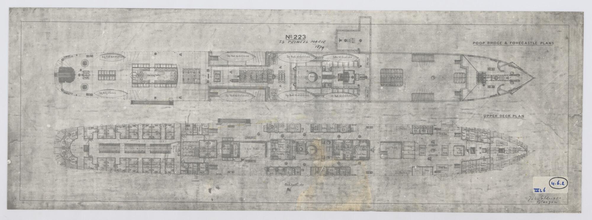 Kampanje-, brugdek, bak- en bovendek van het passagiersschip ss. Prinses Marie van de SMN
