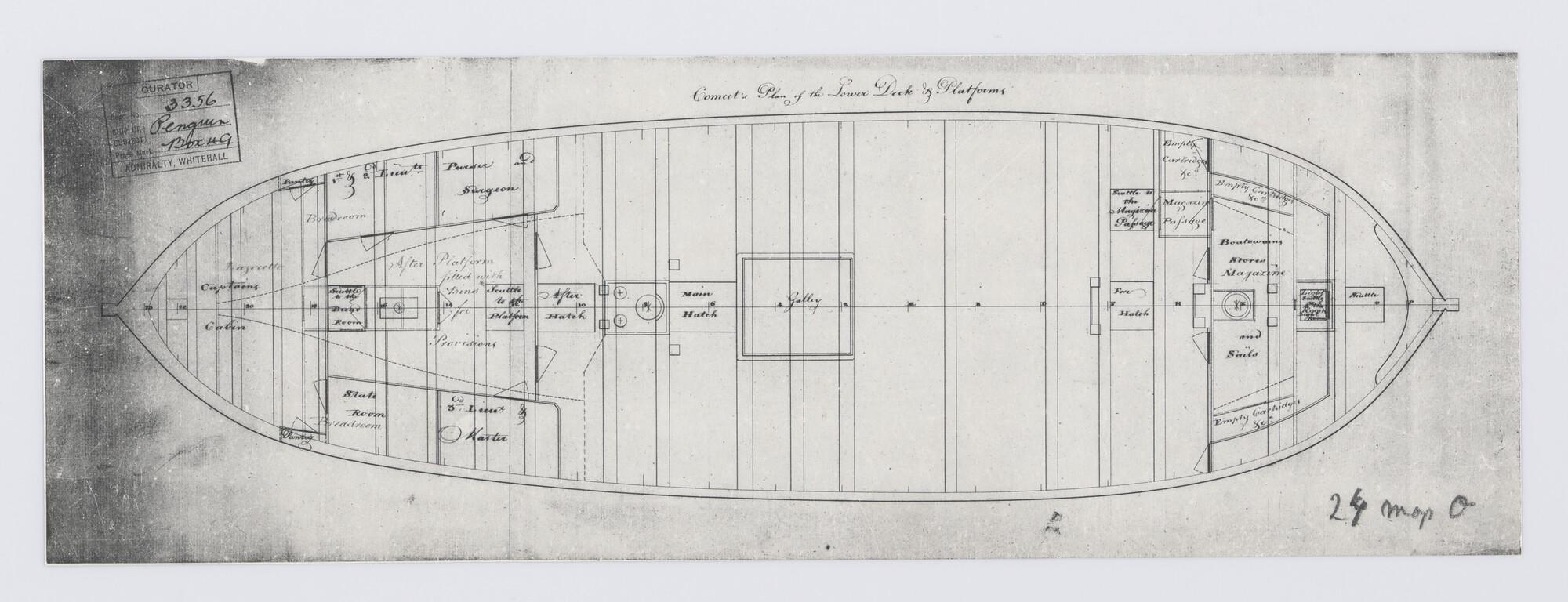 Benedendek ("lowerdeck") en platforms oorlogsschip "Penguin".
