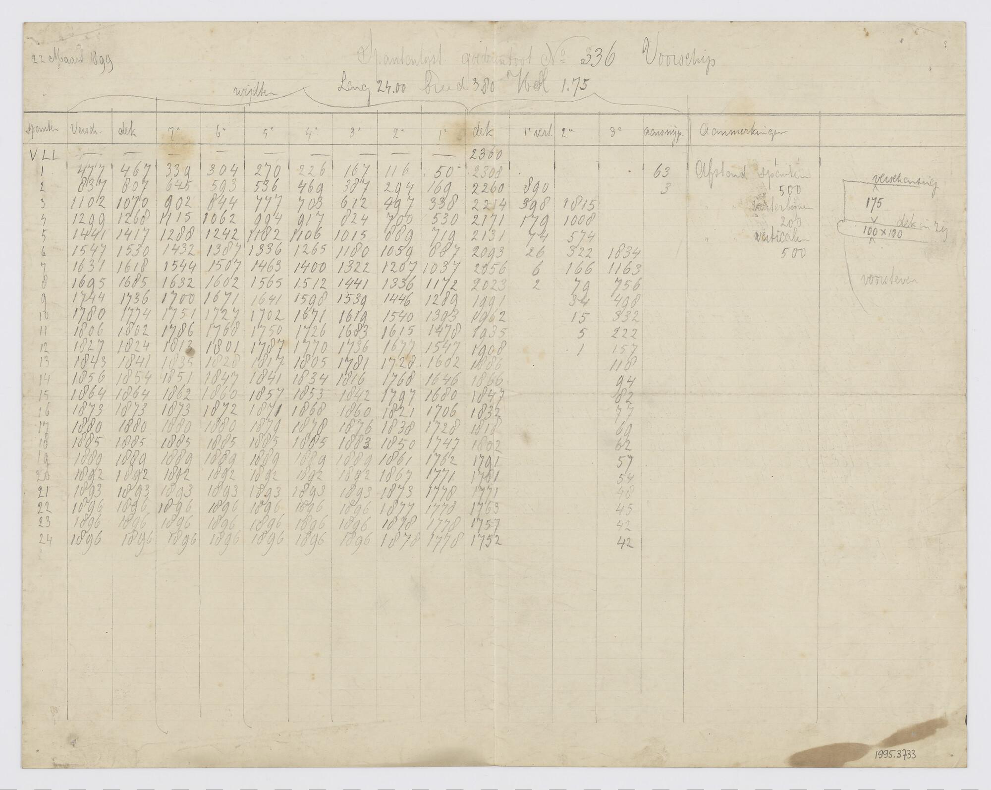 Spantenlijst van het vrachtschip "Baron van Heemstra".