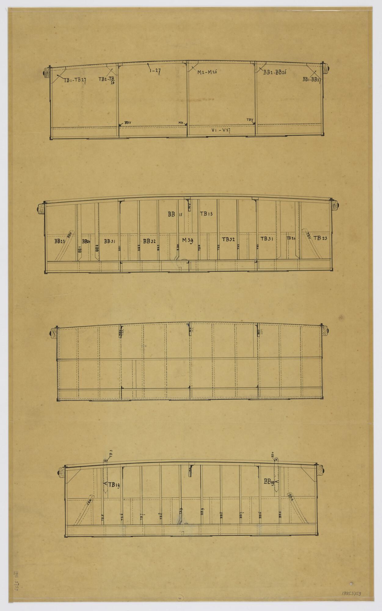 Dwarsdoorsnede en schotten van drijvende bok 'Eberhard'