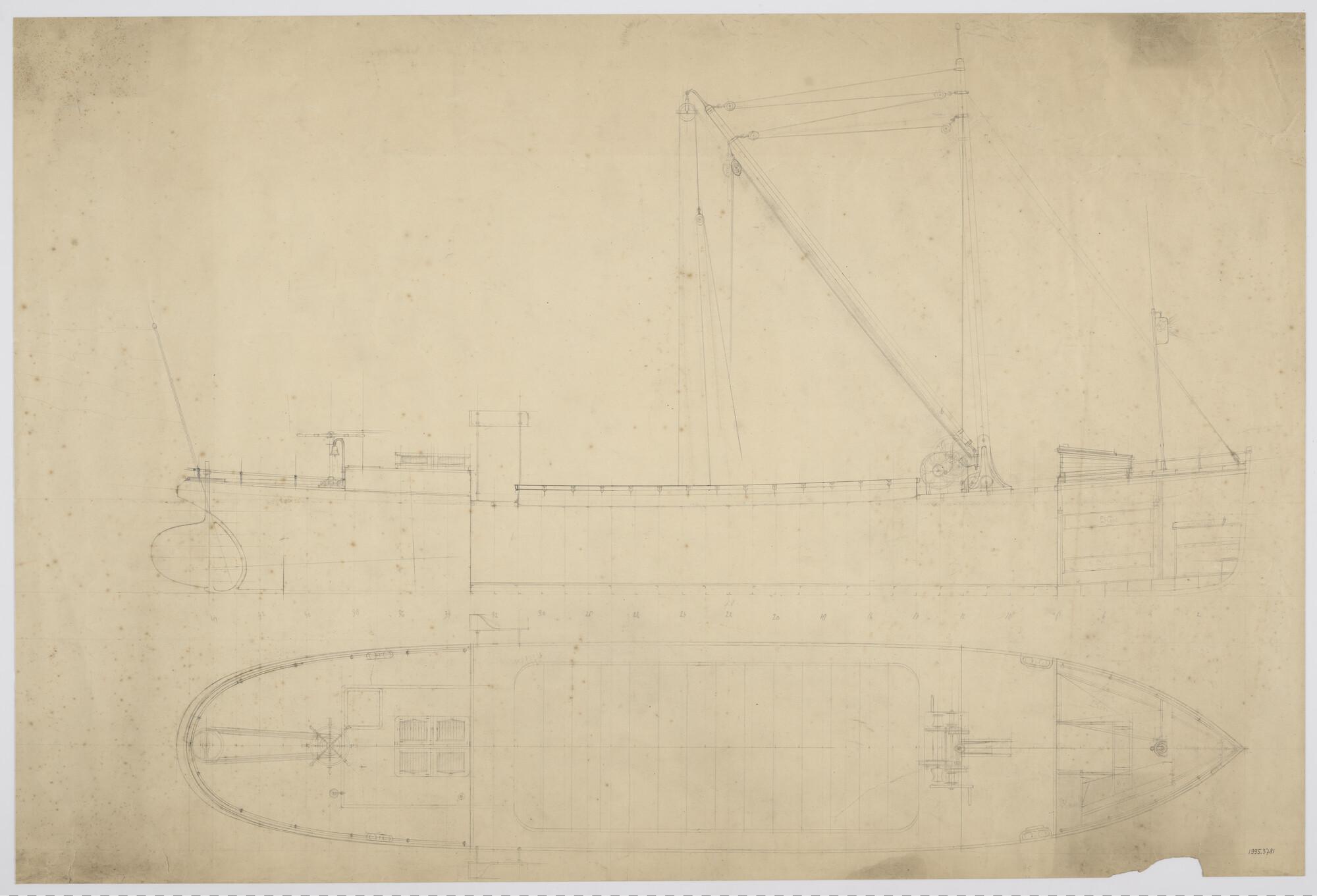 Algemeen plan van het vrachtschip "Vecht", met 8 pk Deutz petroleummotor (schaal 1:20).