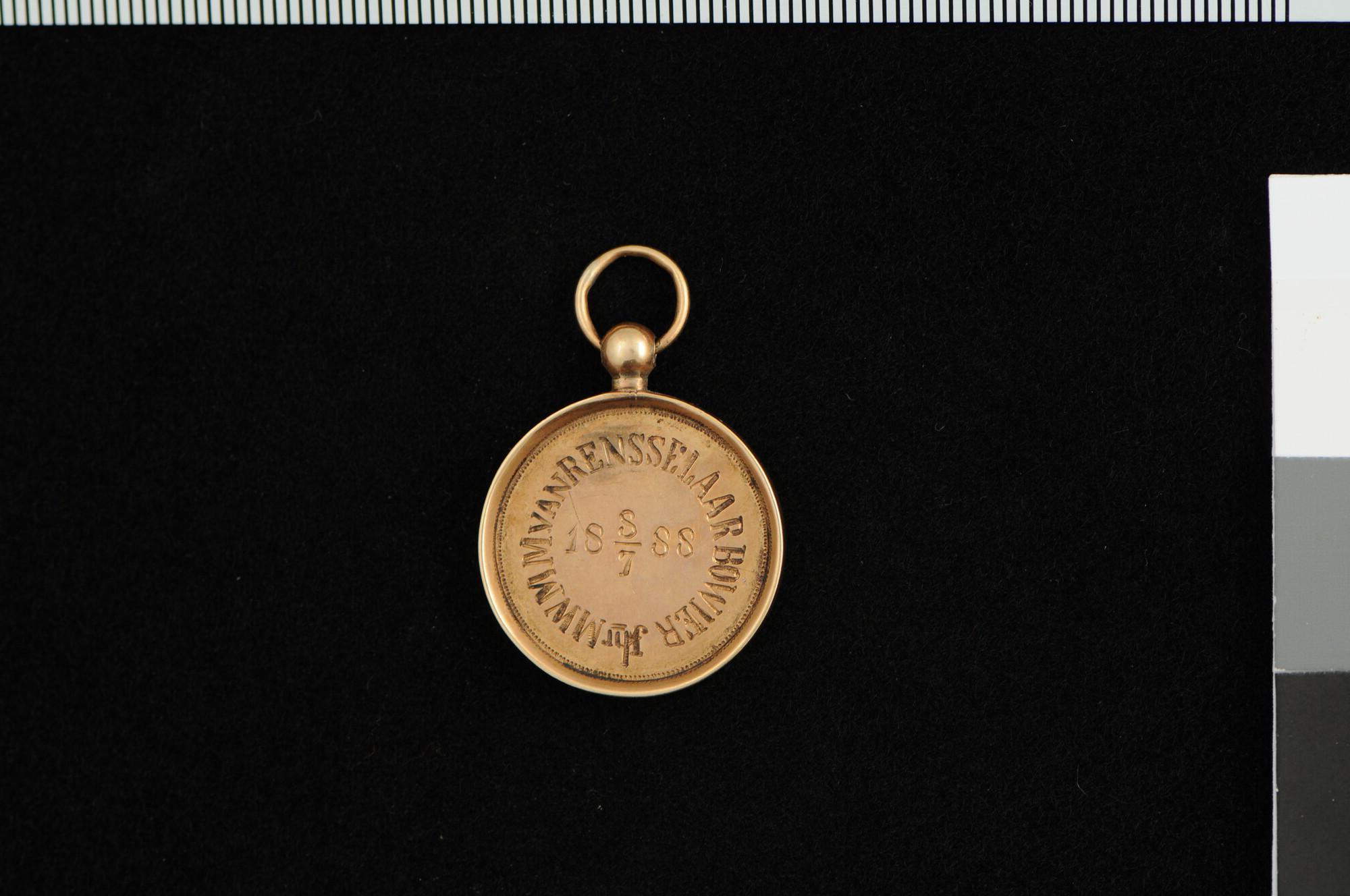 Draagpenning van de Amsterdamsche Zwemclub uitgereikt aan jonkheer M.W.M.M. van Rensselaer Bowier, 8 juli 1888.