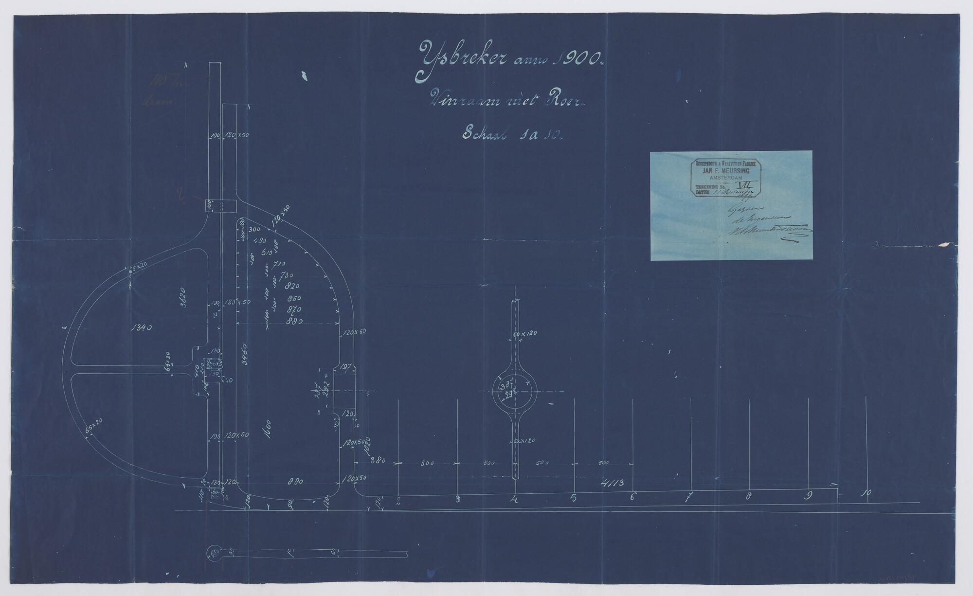 Constructietekening roer en schroefraam van de ijsbreker ss. Christiaan Brunings