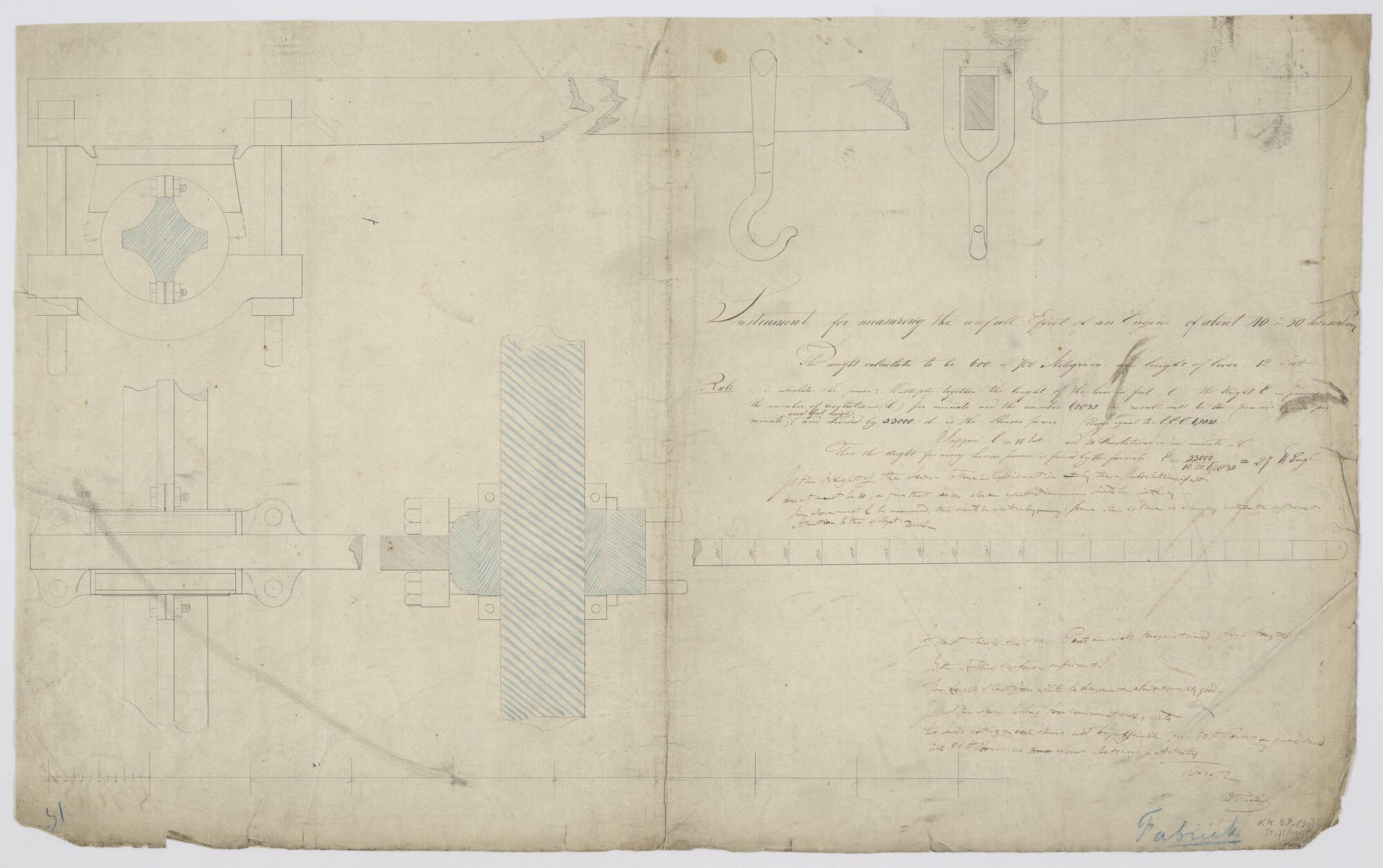 Instrument for measuring the usefull effect of an engine of about 40 à 50 horse power.