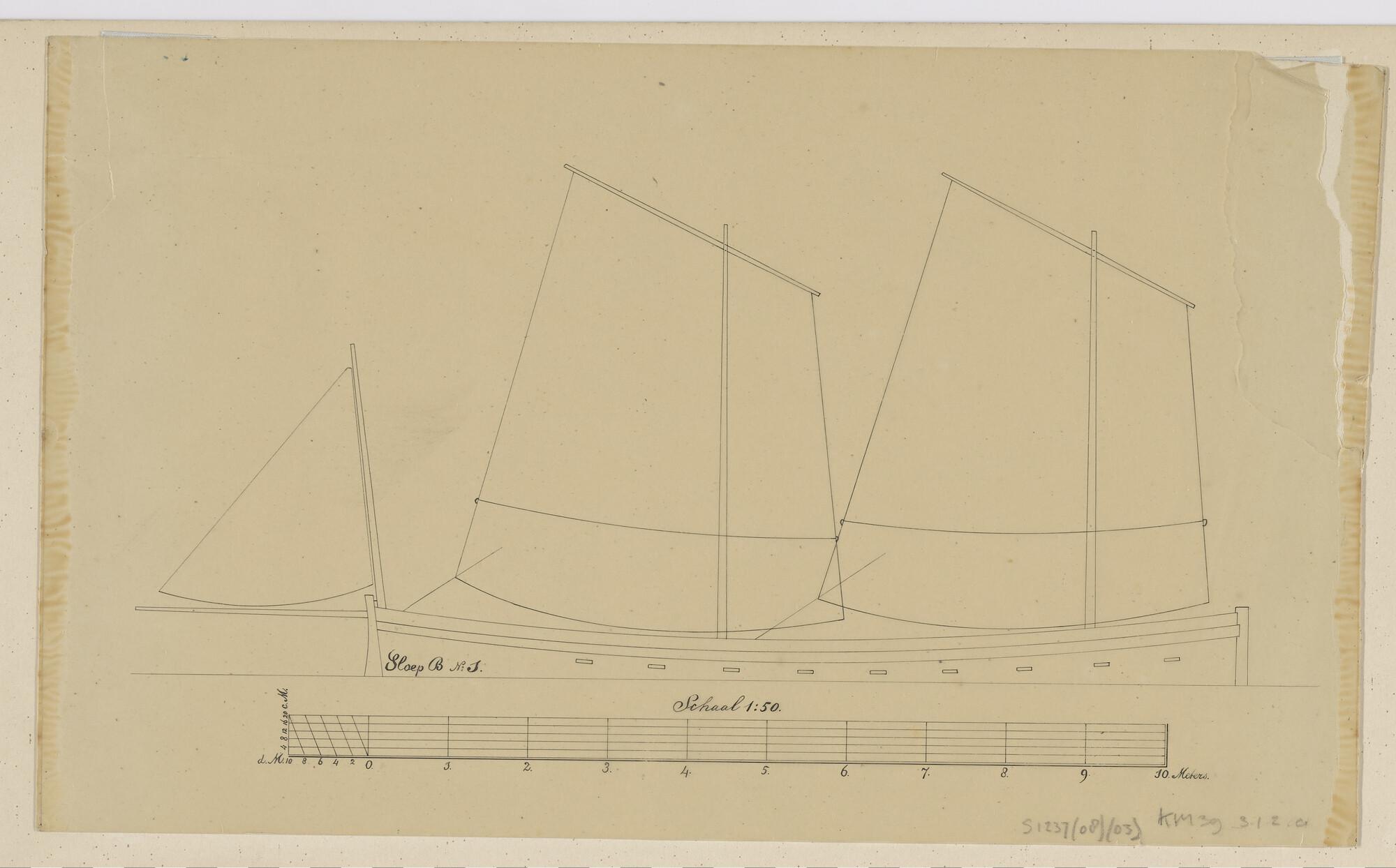 Tuig- en zeilplan van de sloep B1 (ca.1880)