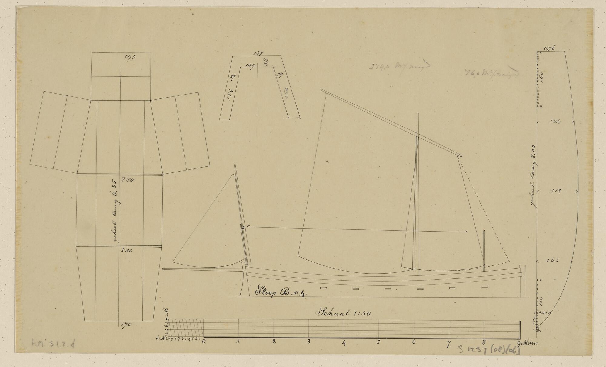 Tuig- en zeilplan van de sloep B4 (ca.1880)