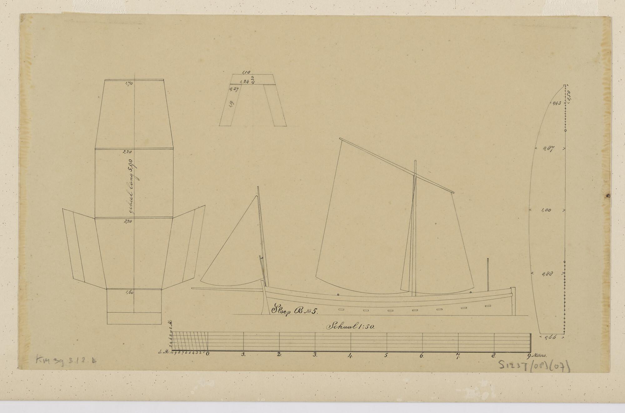 Tuig- en zeilplan van de sloep B5 (ca.1880)
