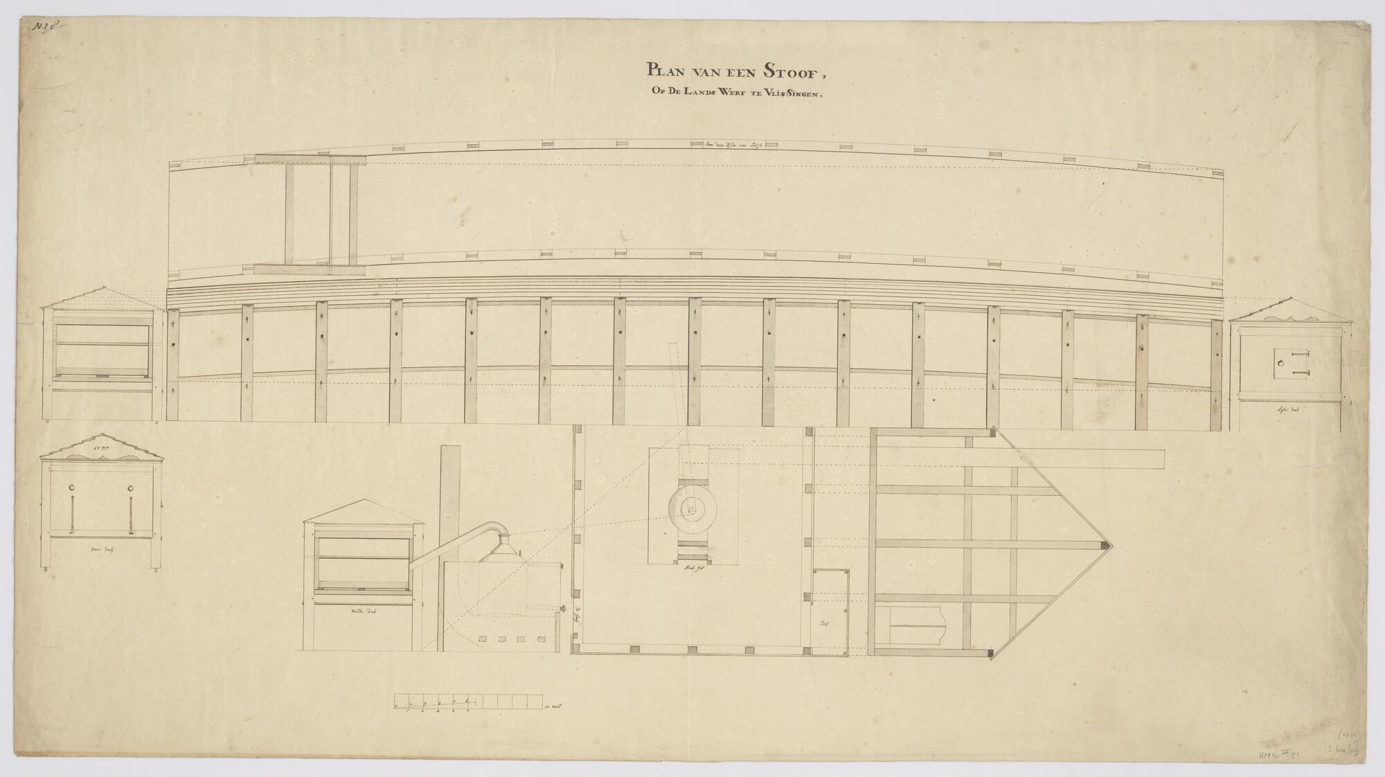 Doorsneden van een stoof om hout te buigen op 's Lands Werf te Vlissingen (1799)