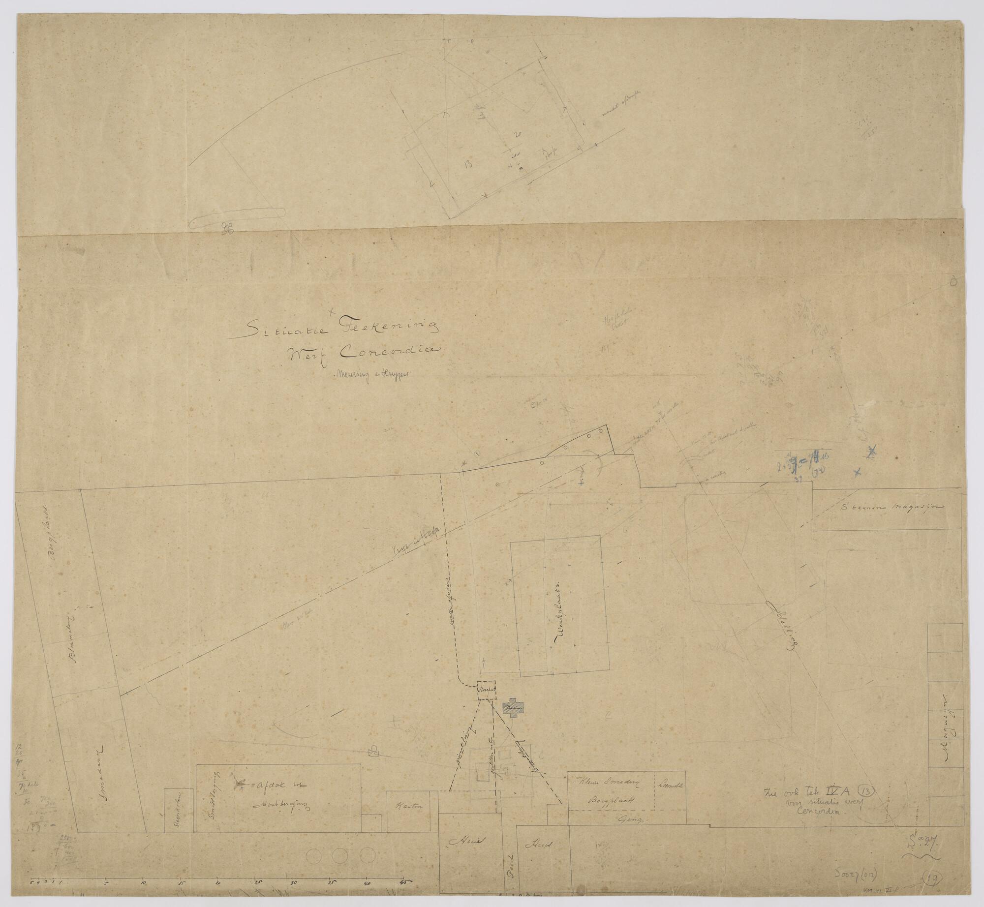 Plattegrond van de scheepswerf Concordia op Oostenburg (gelegen aan de Wittenburgervaart) te Amsterdam