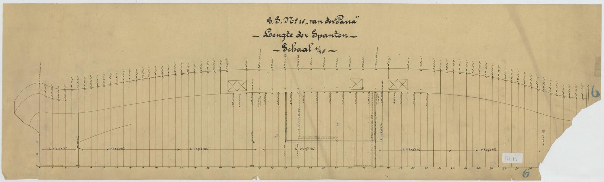 Spantenplan van het vracht- en passagiersschip Van der Parra