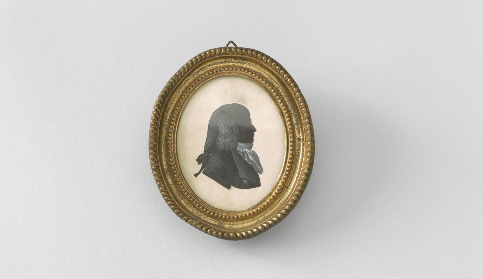 Silhouetportret van Claas Taan de Jonge. Ovaal knipwerk, ingelijst.