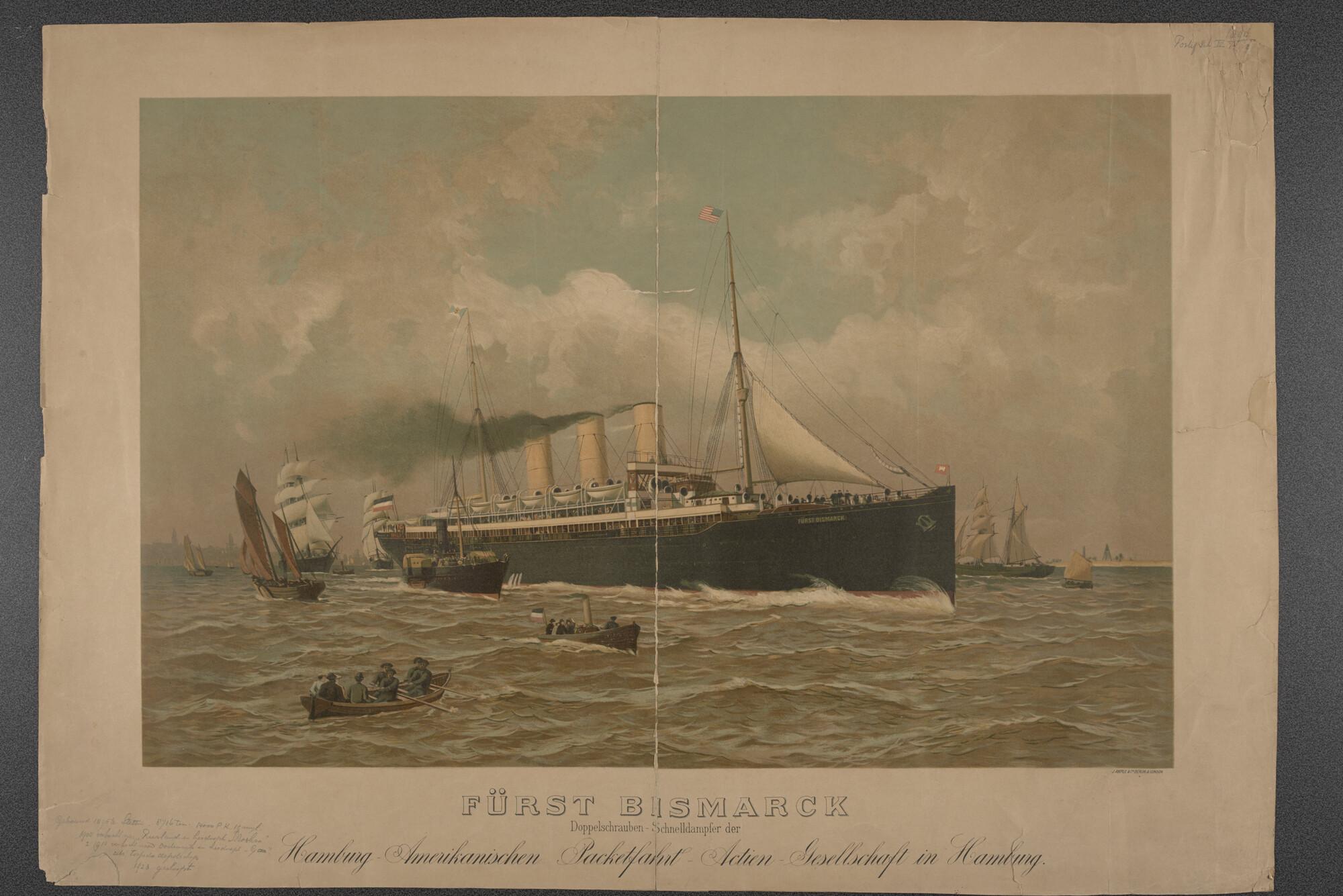 Reclameaffiche voor de oceaanstomer Fürst Bismarck van de Hamburg-Amerikanischen Packetfahrt-Actien-Gesellschaft.