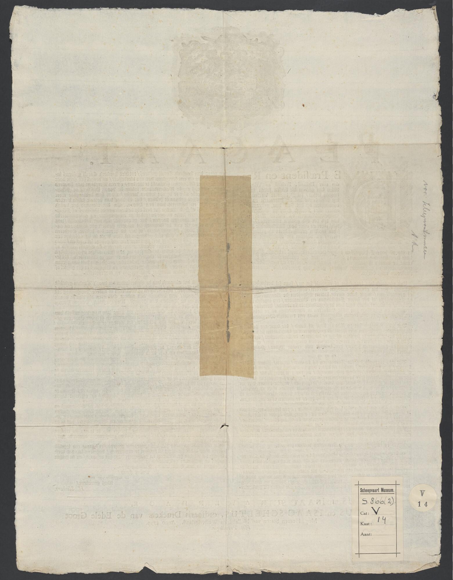 Plakkaat betreffende de strandvonderij in Holland, Zeeland en Friesland.