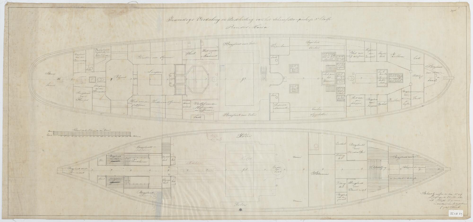 Het schroefstoomschip 3de klasse Zr.Ms. "Prinses Maria", 1858. 46.68 x 9 x 4.80 ellen. Tussendek en kuildek.