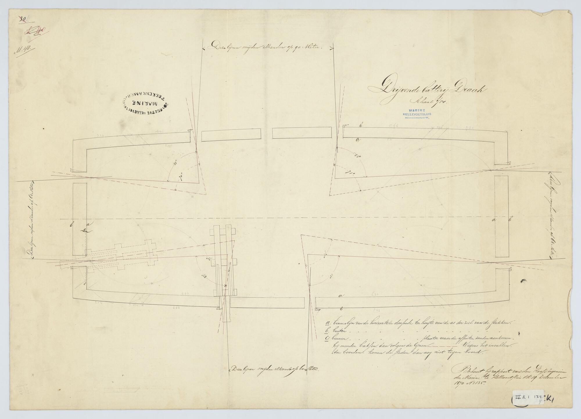 Drijvende batterij "Draak", 1859 (ex- fregat Zr.Ms. "Ceres", 1820). Bovenaanzichten van het blokhuis.