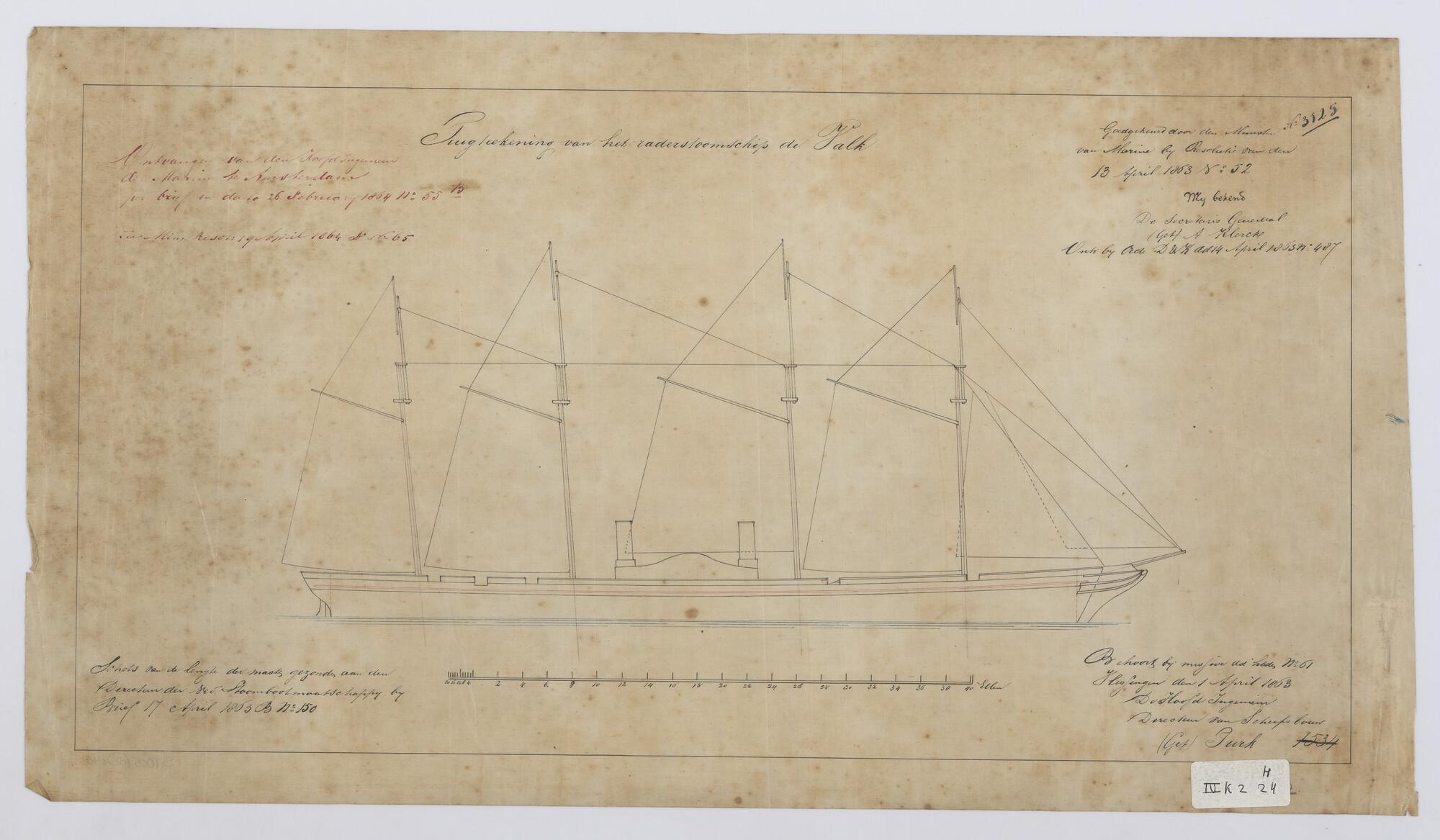 Het raderstoomschip Zr.Ms. Valk, 1863. Masten en tuigplan 1863, 1866, 1867, 1882, 1883.