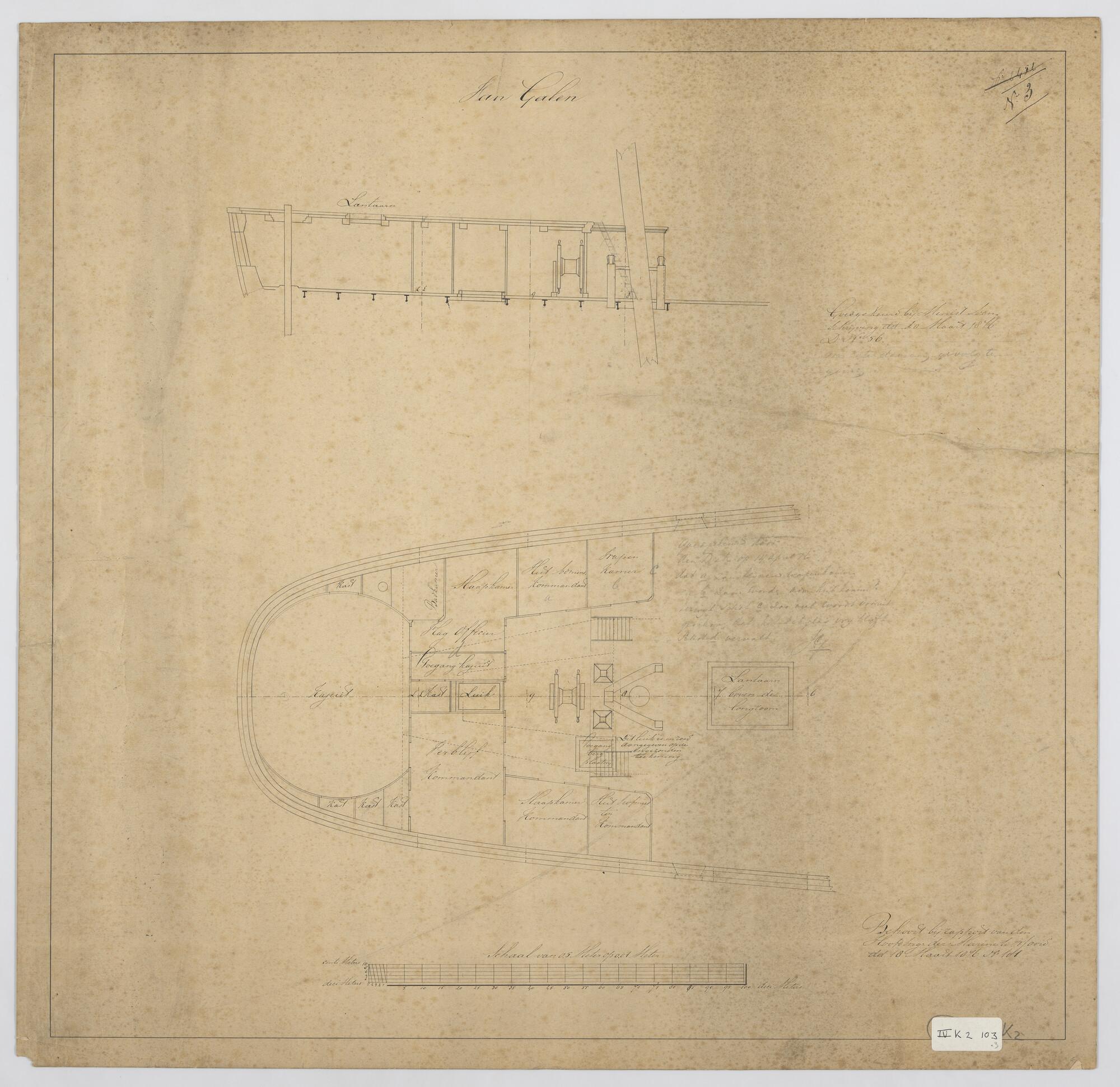 Het schroefstoomschip 1ste klasse Zr.Ms. "Van Galen", 1868. Verbouwing bij kajuit 1874, 1876, 1879, 1887.