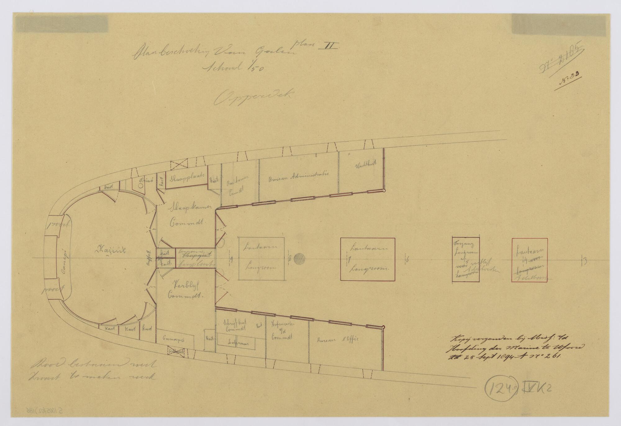 Het schroefstoomschip 1ste klasse Zr.Ms. "Van Galen", 1868. Wijzigingsplannen beschieting 1894.