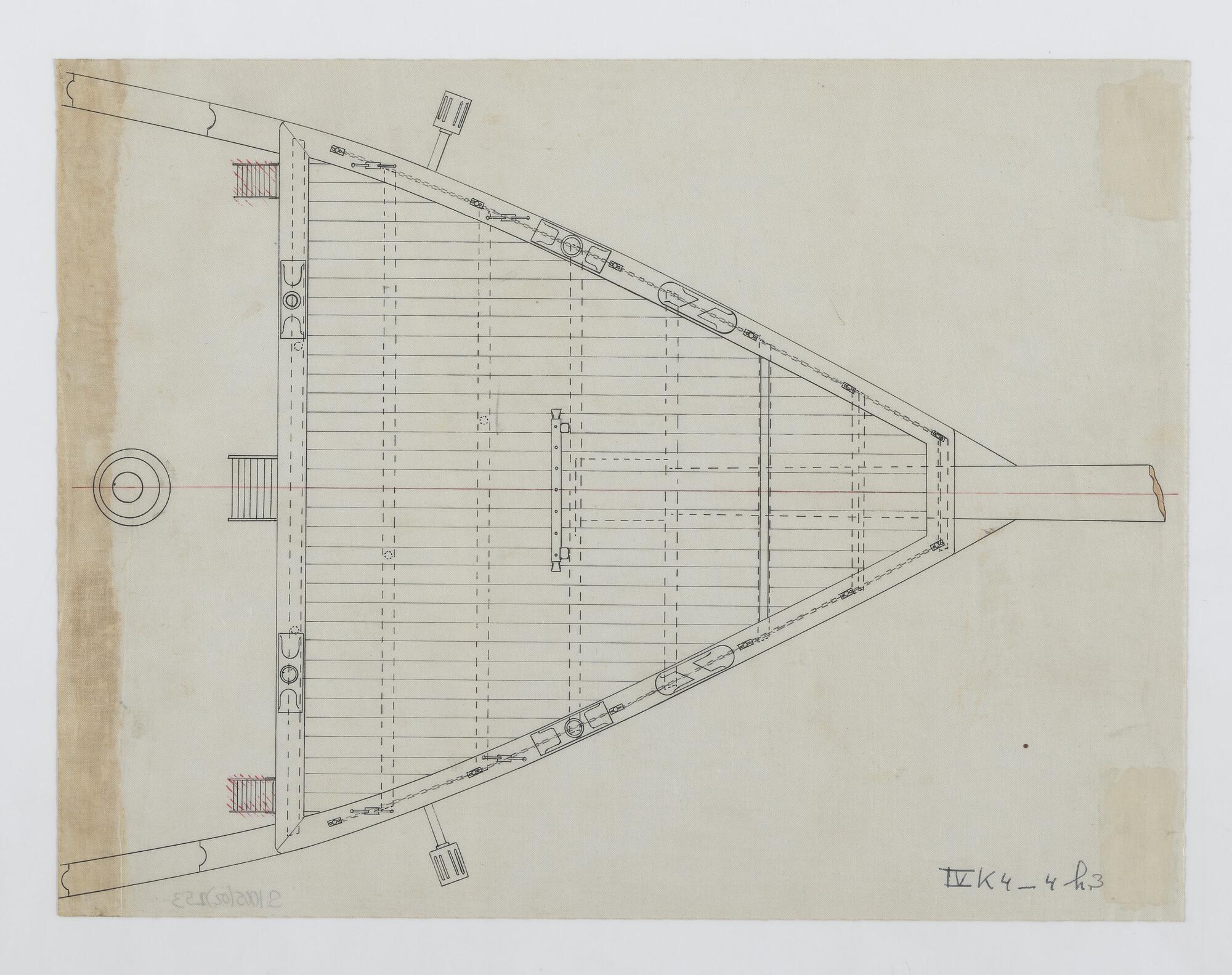 Het zeil-instructiekorvet Zr.Ms. "Nautilus", 1884. Bovendek, kampagne en kuildek en bak.
