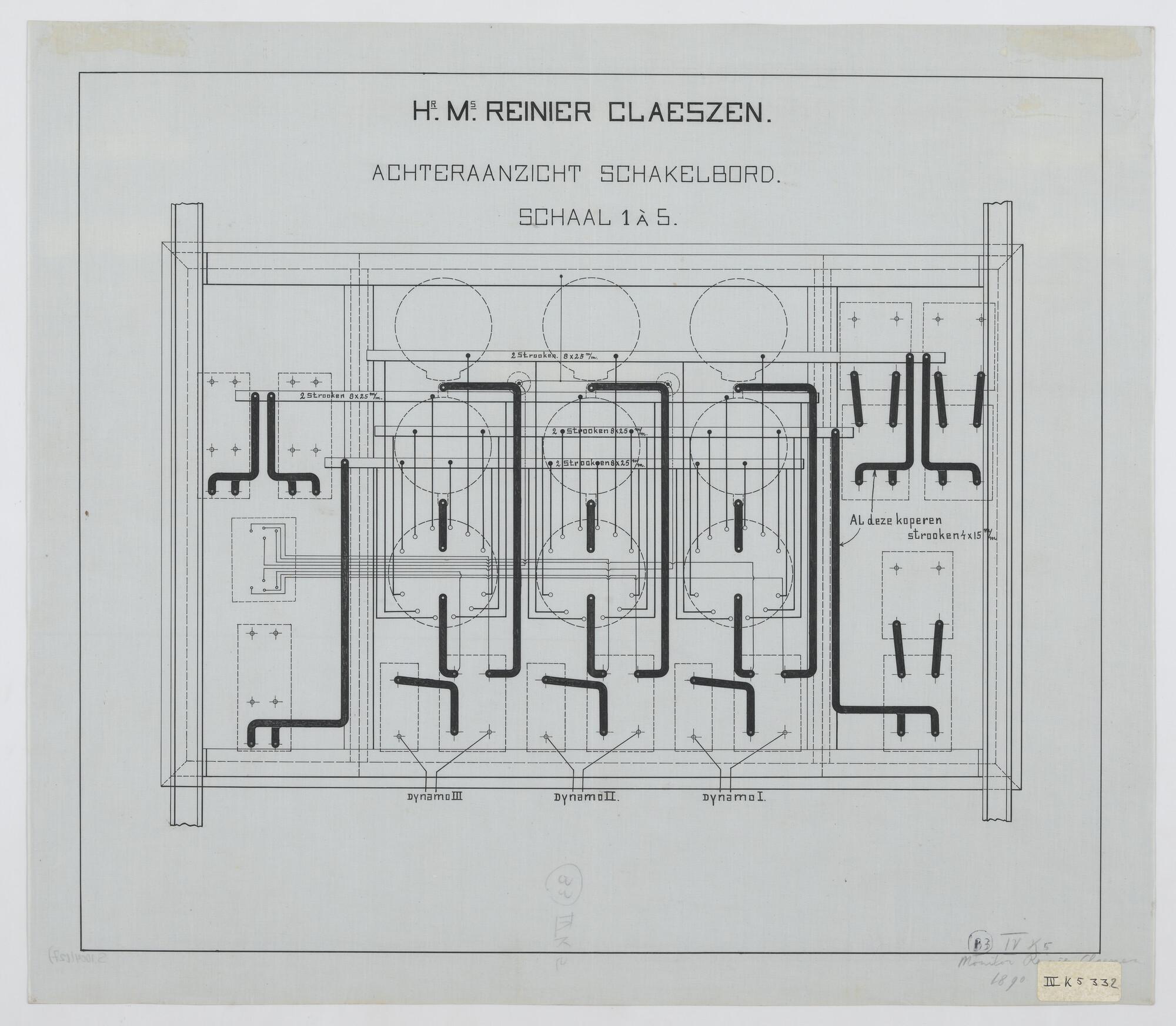 De monitor Zr.Ms. "Reinier Claeszen", 1890. Achteraanzicht schakelbord.