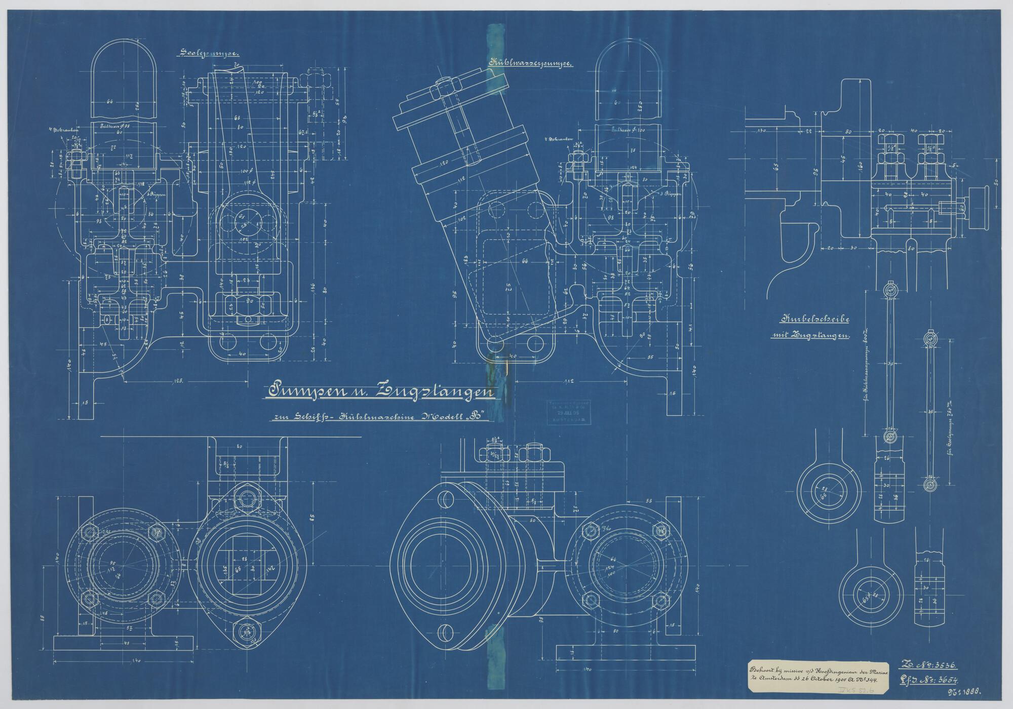 Het pantserdektorenschip Hr.Ms. "Koningin Wilhelmina der Nederlanden", 1892. Onderdelen koelmachines.