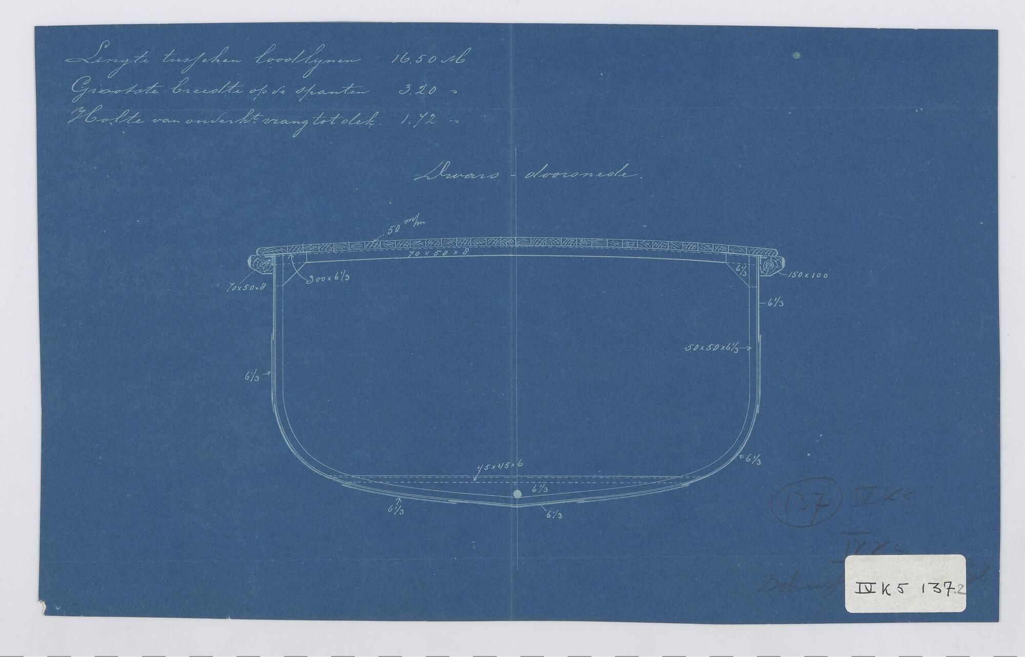 Het torpedo-communicatievaartuig Hr.Ms. "Pijl", 1891. dwarsdoorsnede.