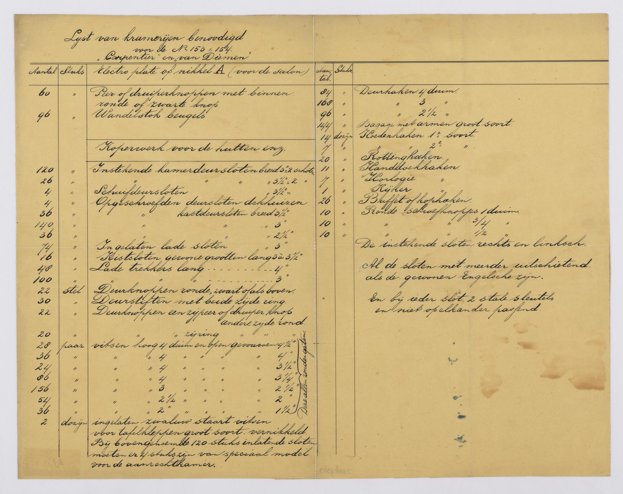 Lijst van kramerijen voor de vracht- en passagiersschepen ss. De Carpentier en het ss. Van Diemen van de Koninklijke Paketvaart-Maatschappij.