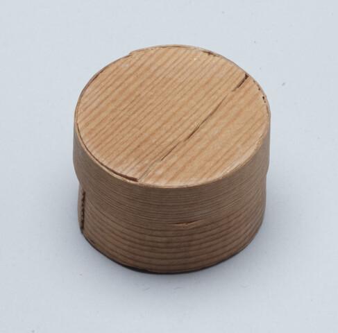 Pillendoos van spaanhout, rond. Onderdeel uit de medicijnkist van de Nederlandse Noordpool Expeditie 1882 - 1883.