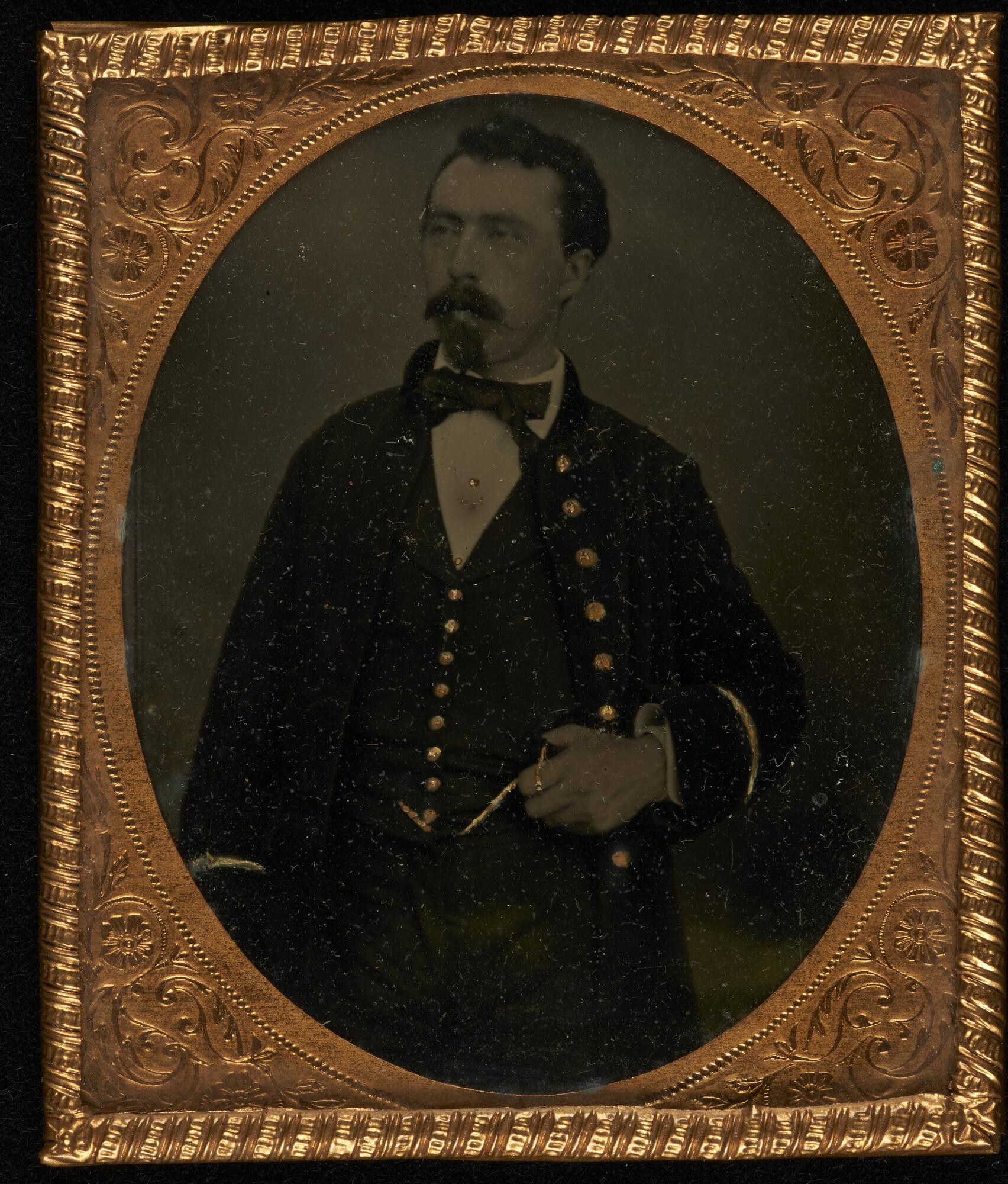 Ambrotypie; een portret van een (zee)officier in een lijstje