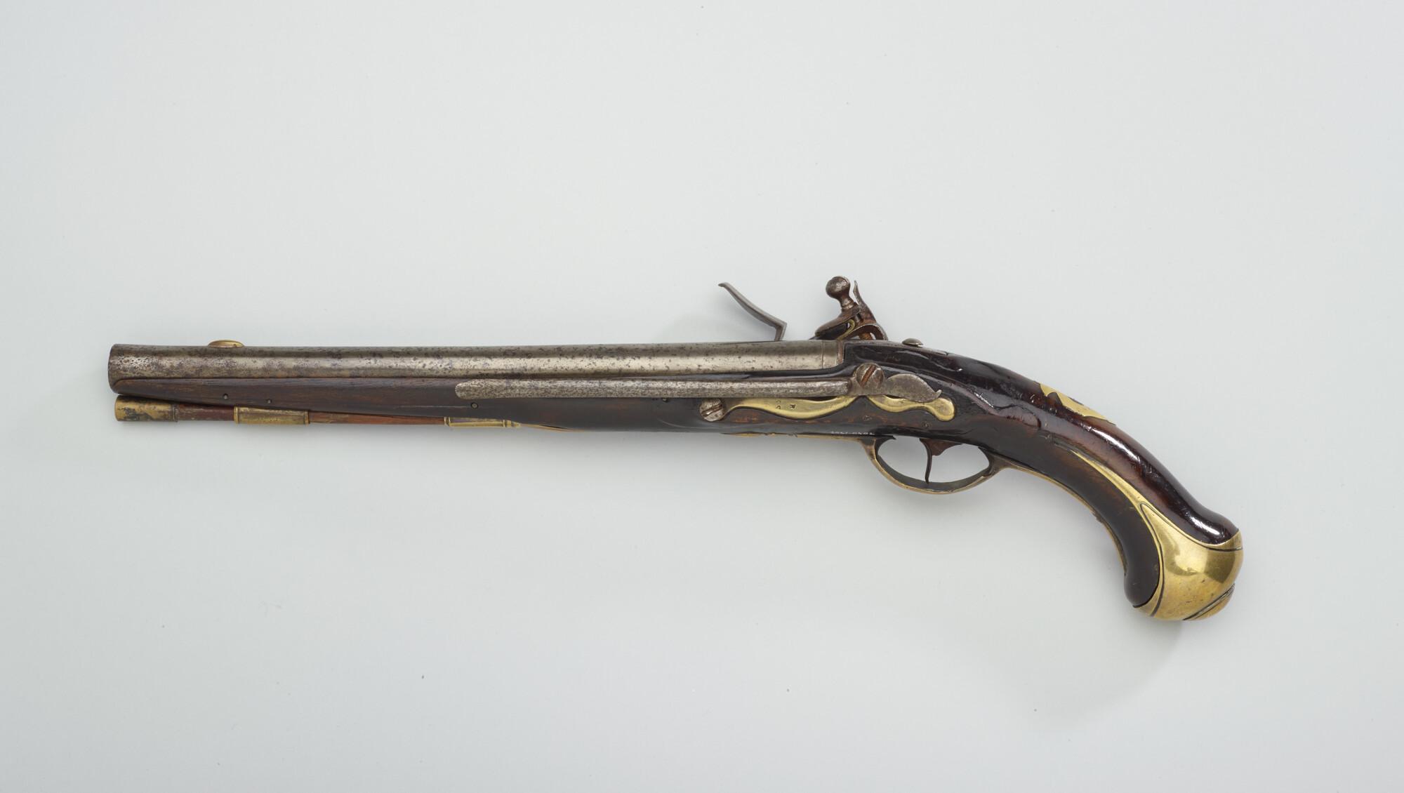 Scheepspistool met vuursteenslot met laadstok en gordelhaak.
