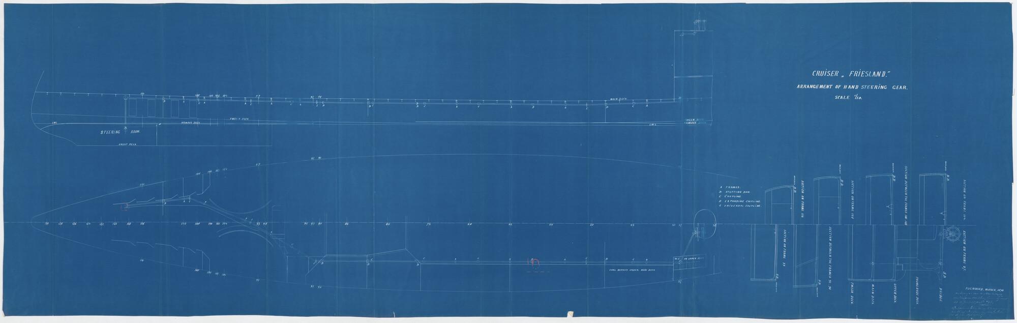 Asleiding voor de handstuurinrichting van het pantserdekschip Hr.Ms. Friesland (schaal 1:50).
