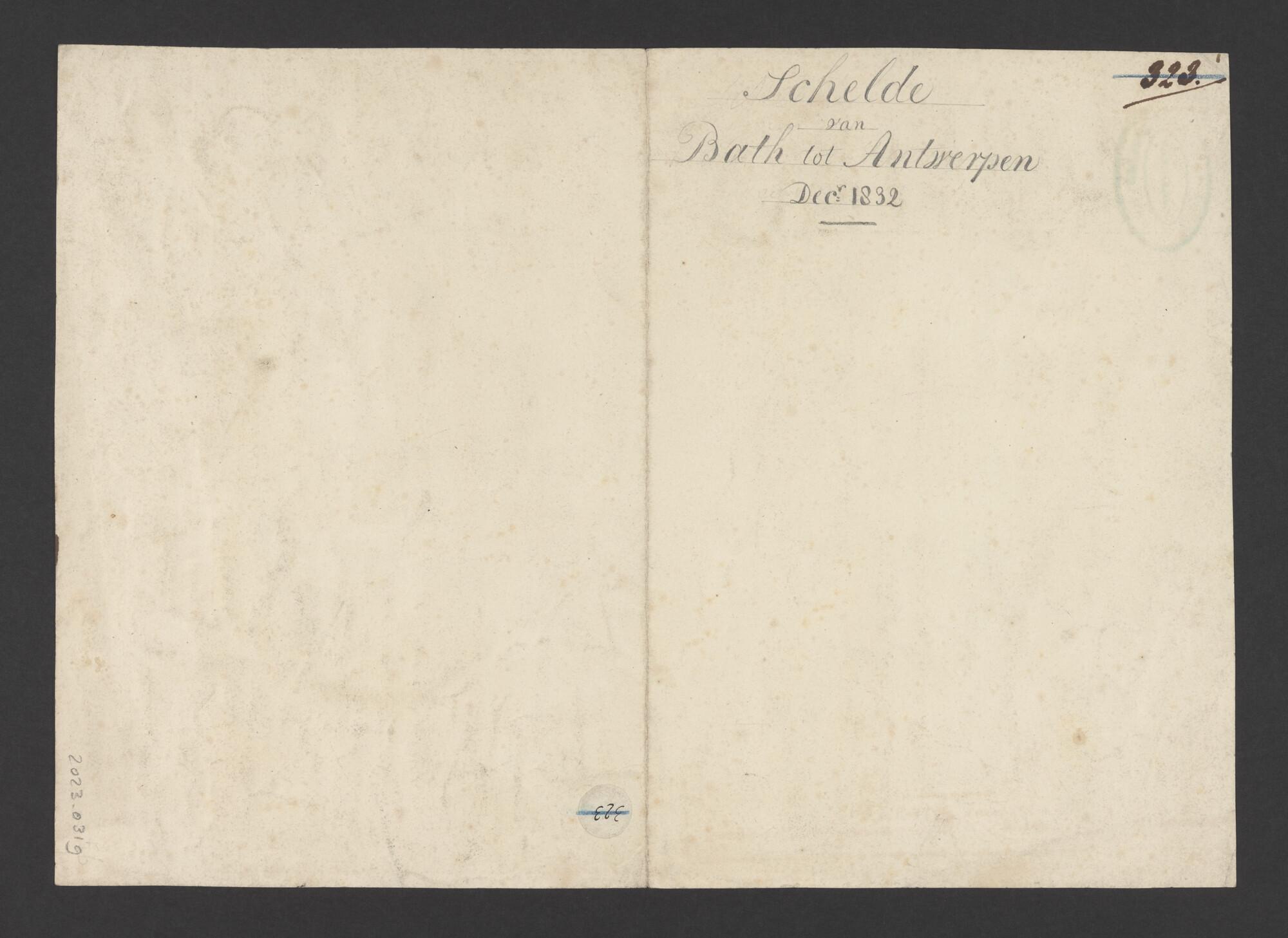 Prent met een gezicht in vogelvlucht op de Schelde van Fort Bath in Zeeland tot aan de stad Antwerpen aan de horizon, ten tijde van het beleg van Antwerpen in december 1832. Op de rivier is de ligging van de kanonneerboten en fregatten aangegeven. Langs de rivier staan de verschillende schansen en forten, alles genummerd ...