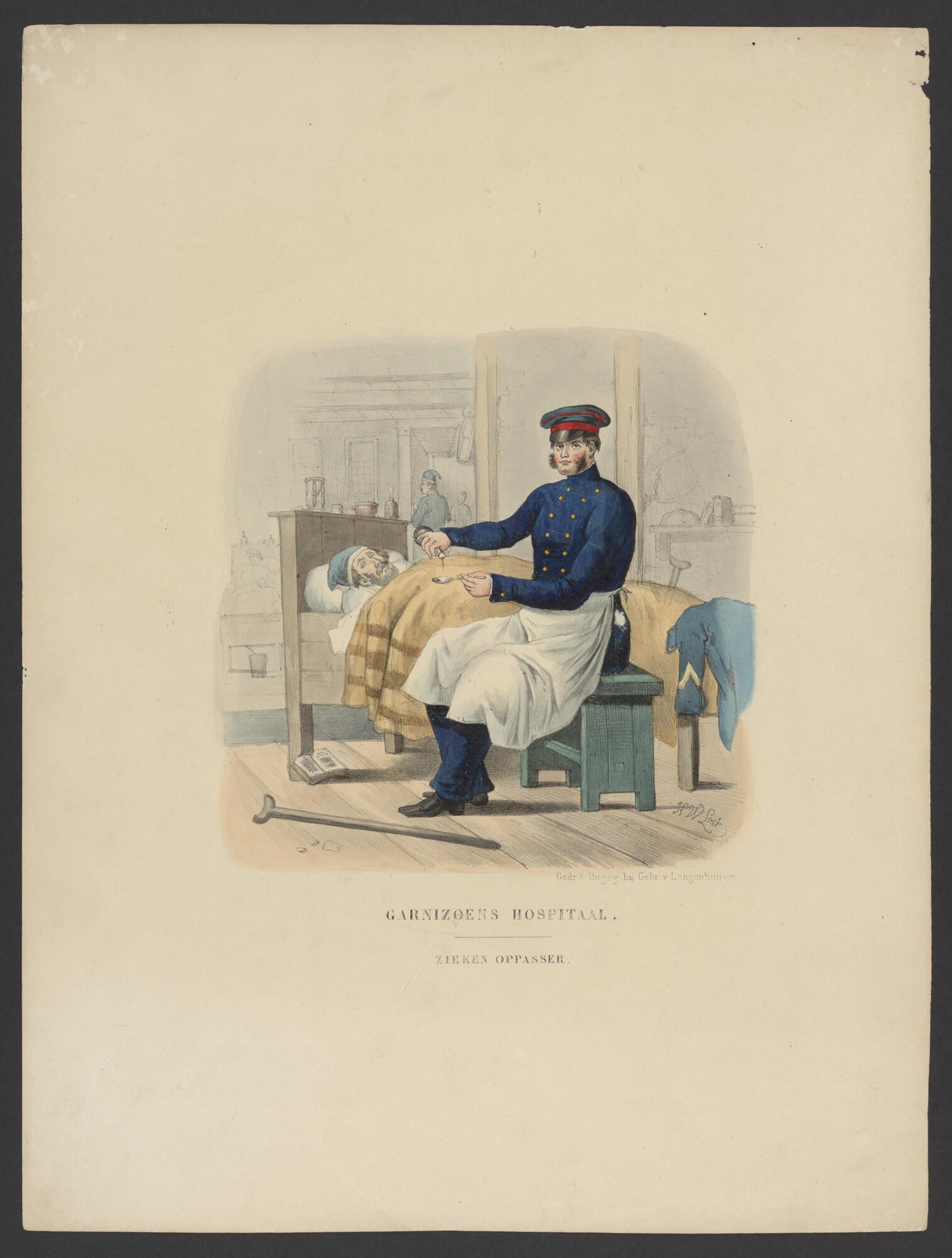 Prent van een ziekenoppasser in een militair garnizoenshospitaal