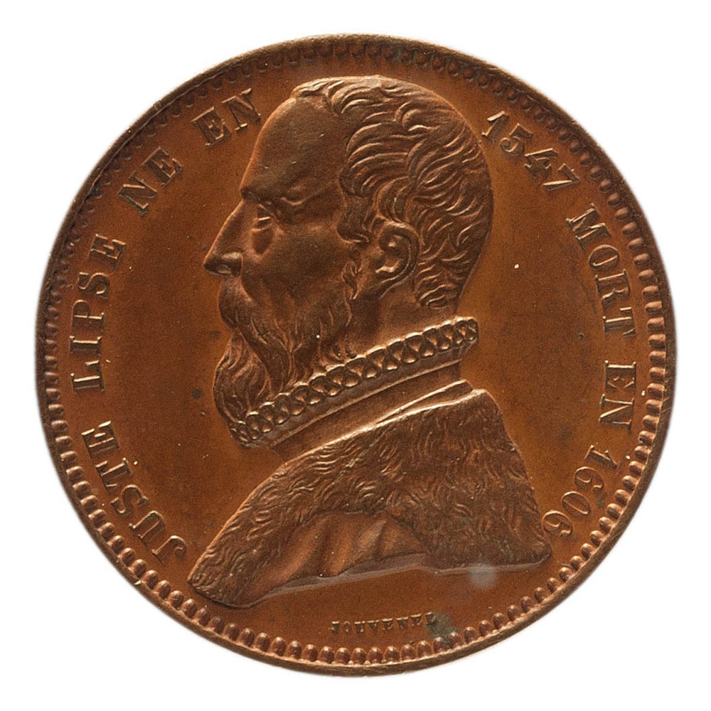 keerzijde: Opschrift waarbij wordt verwezen naar zijn activiteiten als hoogleraar in Leiden, Jena en Leuven.