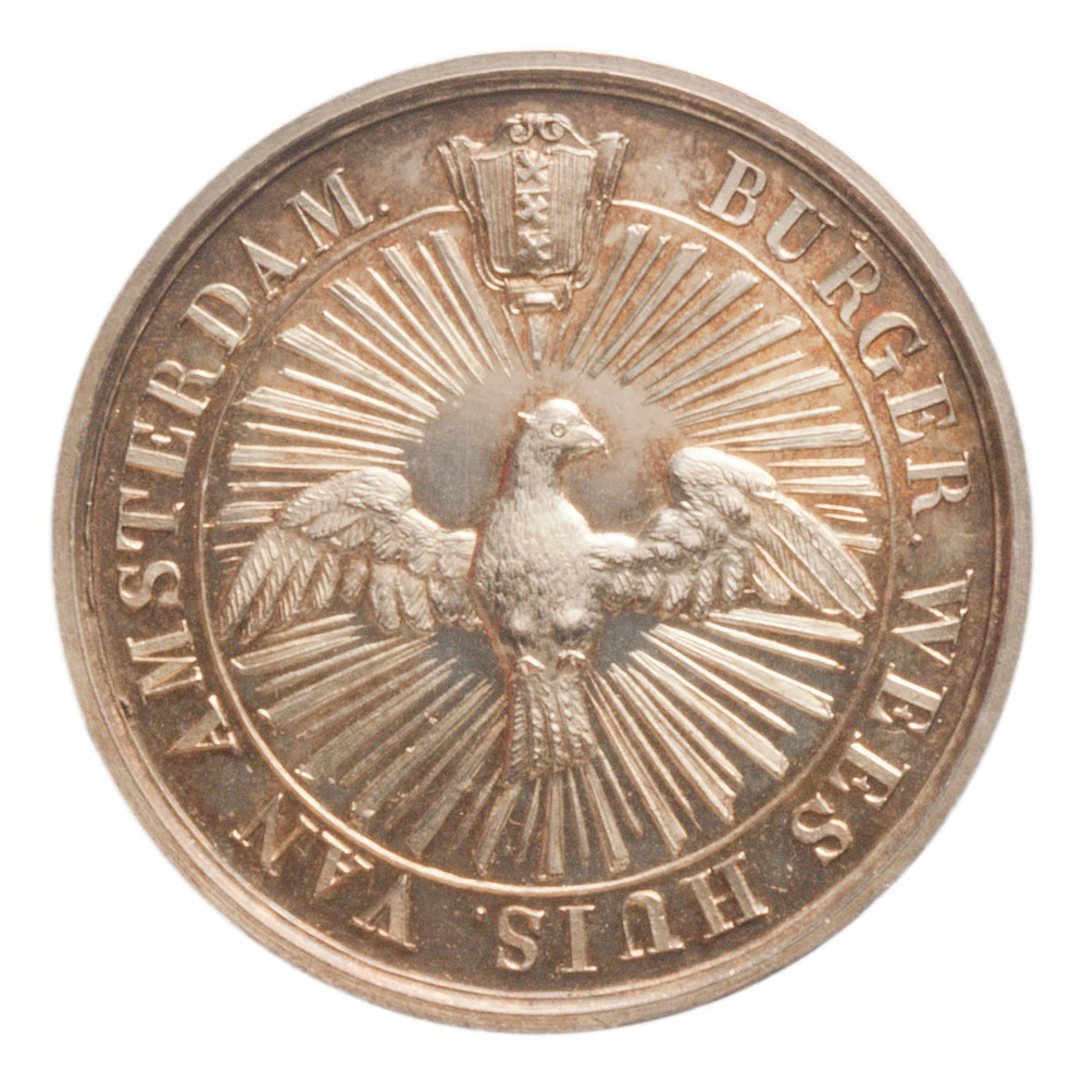 keerzijde: namen van de regenten D.W. Engert, J. Pennis, F. van de Poll, G. Faas Elias, J. Styger en W.J. van der Muelen met onderaan het jaartal 1820.