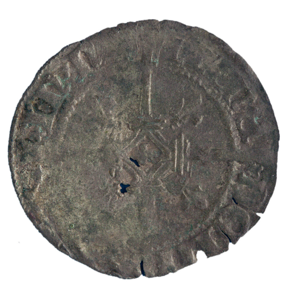 keerzijde: Gevoet kruis met in het centrum een lelie. Tussen de benen van het kruis lelies.