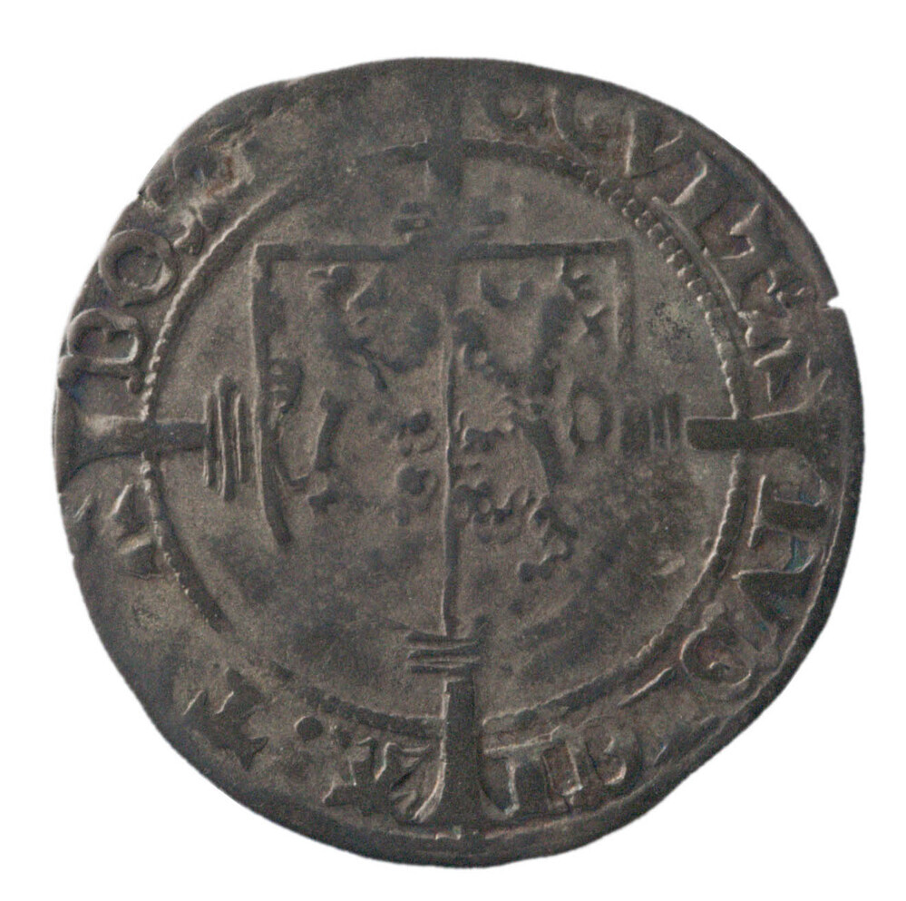 keerzijde: gevoet kruis met daarop het wapen van Gelderland.