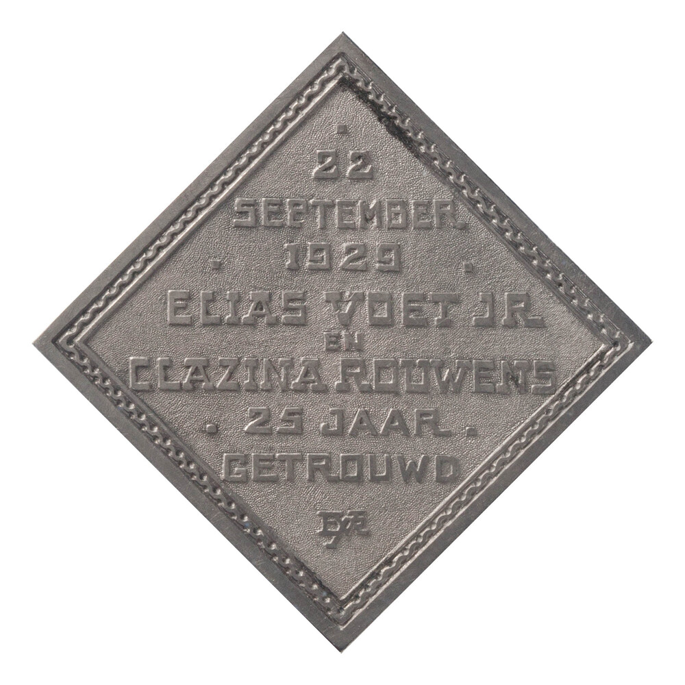 Zilveren huwelijk van Elias Voet junior en Clazina Rouwens, 22 september 1929, penningproef