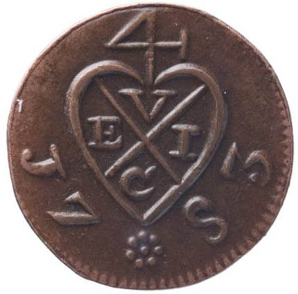 keerzijde: waarde-aanduiding en jaar in het Maleis