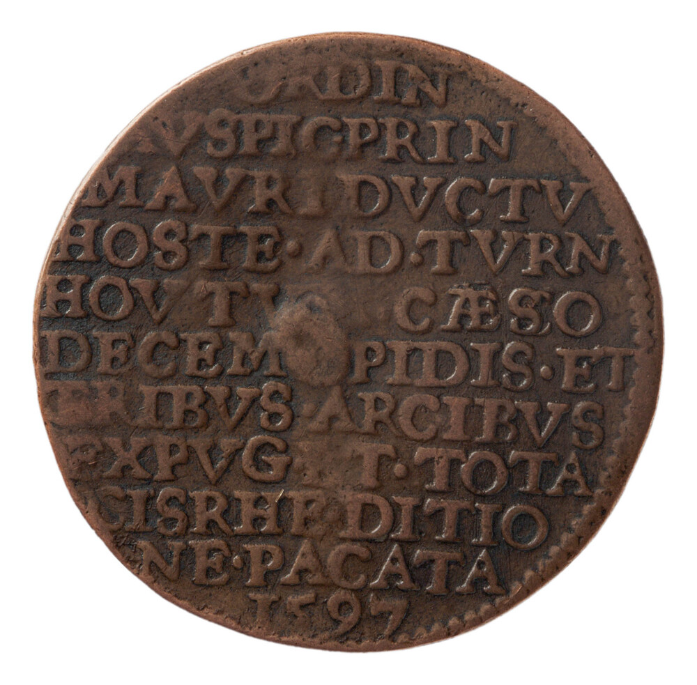Rekenpenning over de overwinning van de coalitie Engeland, Frankrijk en de Nederlanden op de Spanjaarden bij Turnhout