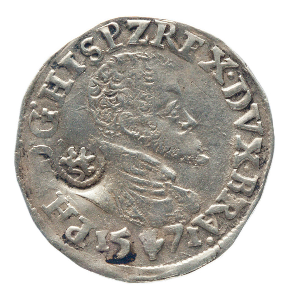 Tiende philipsdaalder uit Brabant op naam van Philips II, koning van Spanje (1556-1598)