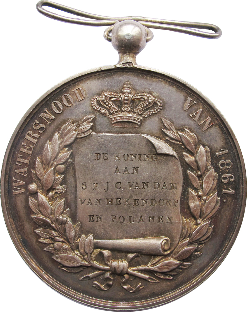 Watersnoodmedaille aan Samuel van Dam, heer van Hekendorp en Polanen verleend wegens verdiensten tijdens de Watersnoodramp van 1861, draagteken