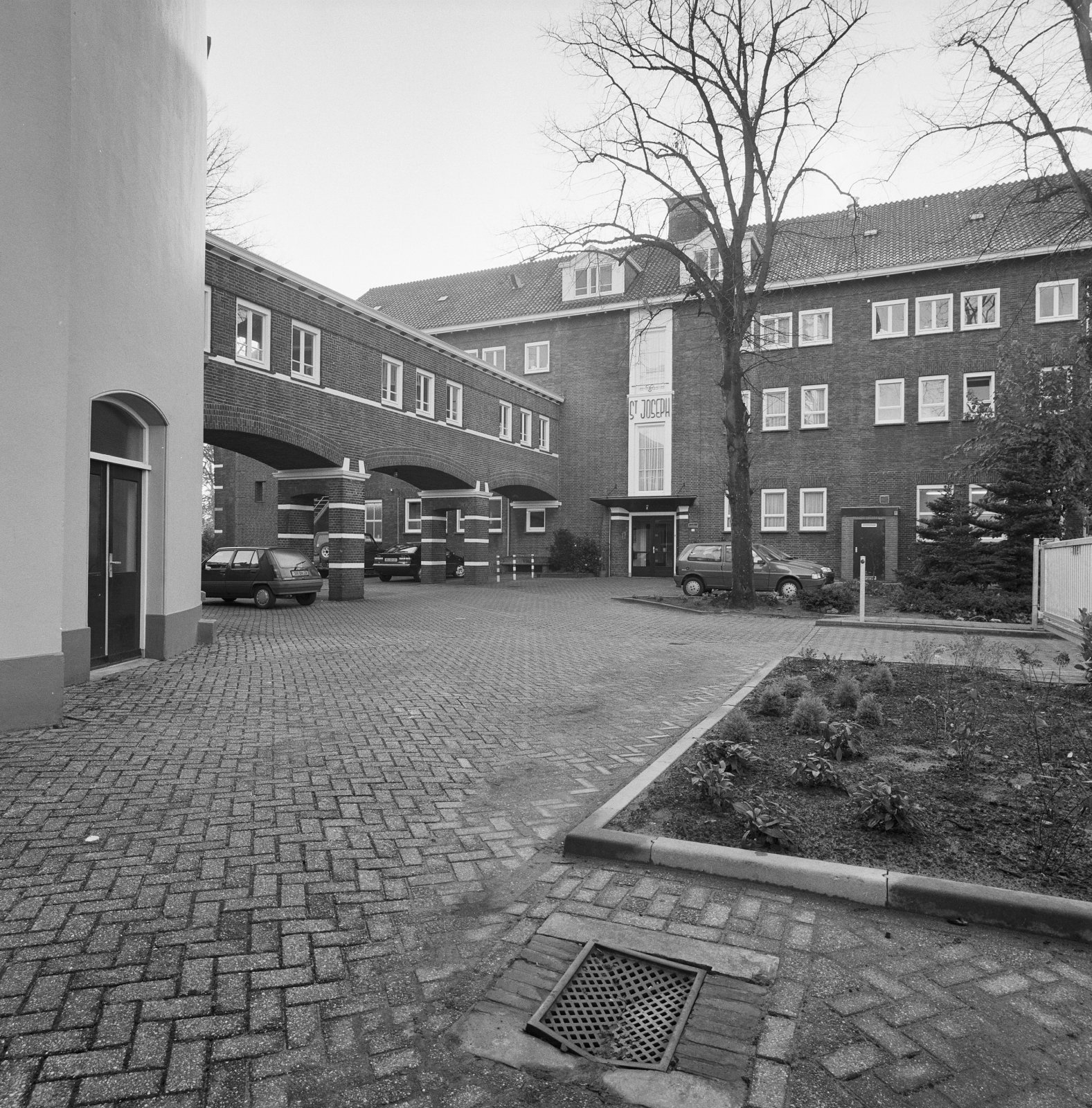 Voorzijde met ingang Sint Joseph met luchtbrug naar ...