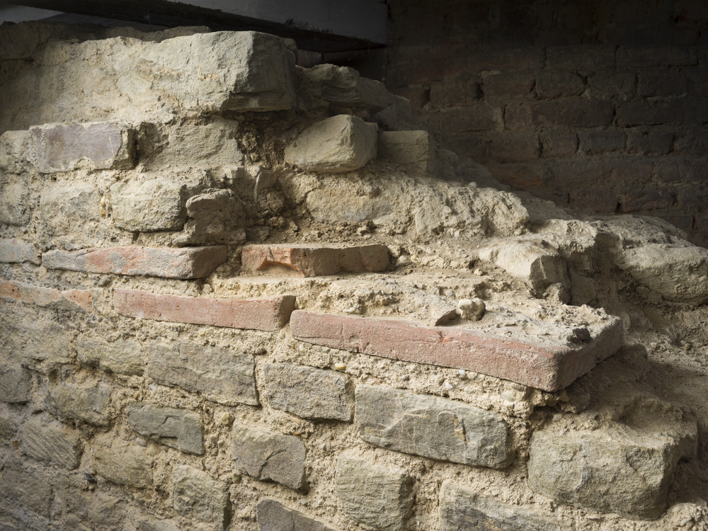 Funderingsmuur van de eerste Romeinse tempel