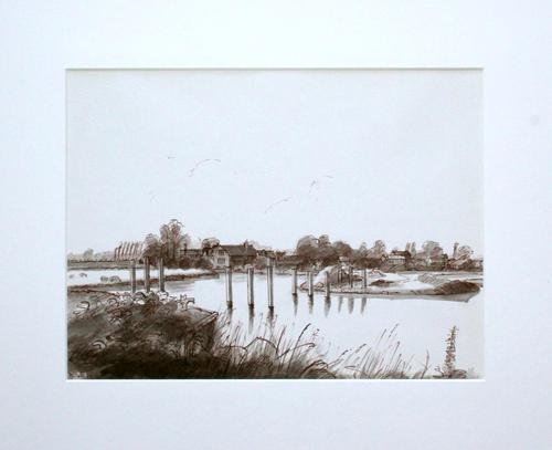 Pentekening. Brug over de Zweth in aanbouw met café ...