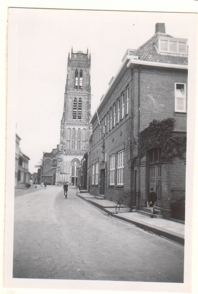 Nieuwstraat met toren en Christelijke school.