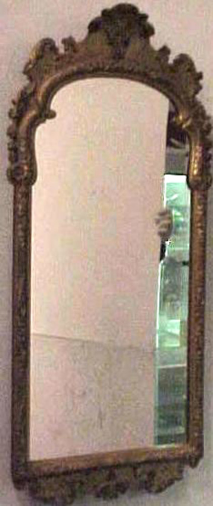spiegel in vergulde houten lijst. Langwerpig model e...