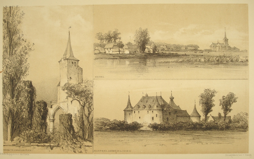 drieluik: kerk en kasteel Ammerzoden, riviergezicht ...