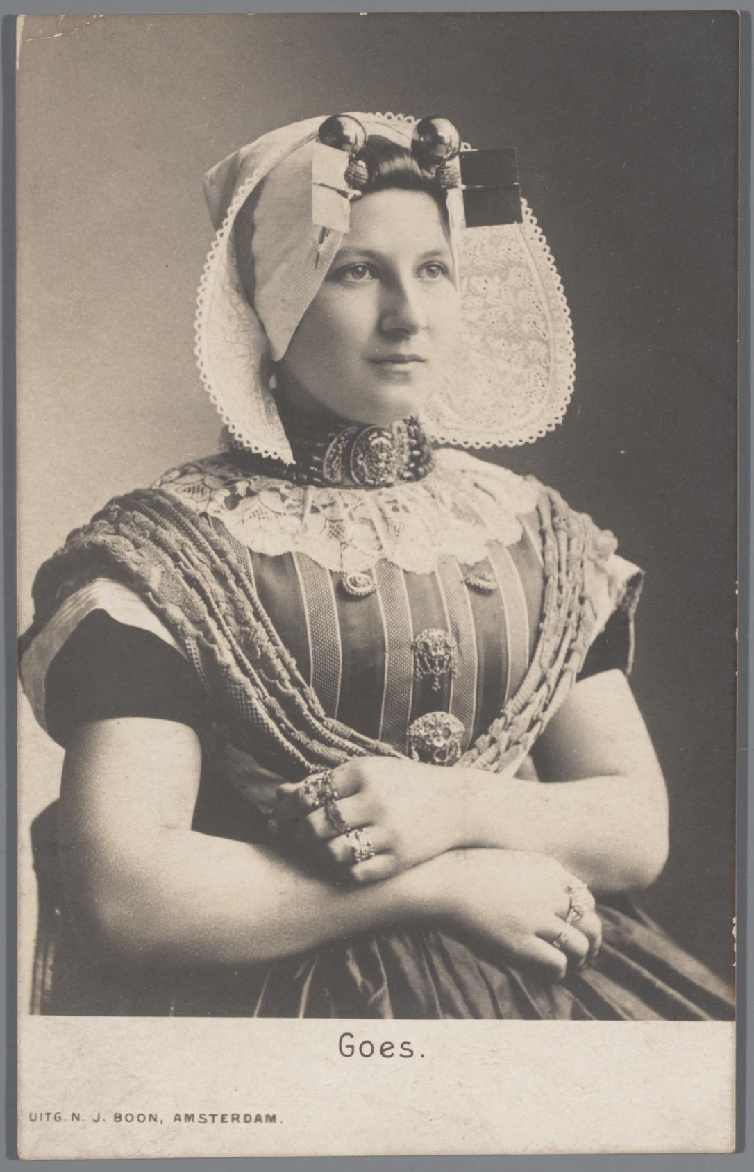 Vrouw in protestantse Zuid-Bevelandse streekdracht, ...