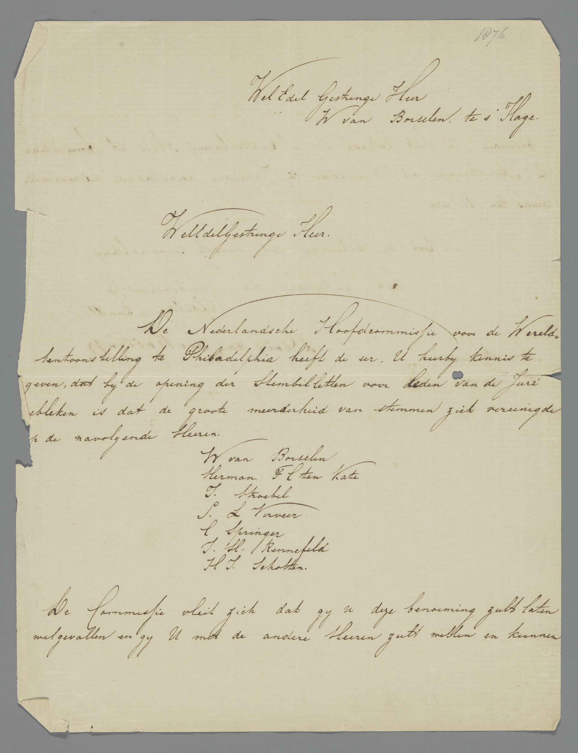 Brief aan de Commissie van de Tentoonstelling van Le...
